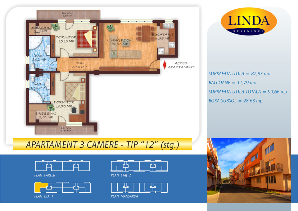 OFERTA: Apartament 3 Camere Tip 12 si boxa la subsol